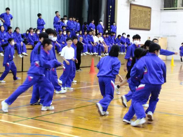 今年度もあと1日の今日、1学年では学年レクリエーションとしてクラス対抗ドッヂビー大会を行いました。ドッヂビーとは、ドッヂボールをボールの代わりにフリスビーを使って行う競技です。ボールと違ってあたっても痛くはありませんが、変な曲がり方をするのでキャッチは難しいところもあります。また、うまく投げないと全然違う方向へ飛んで行ってしまい、案外難しい。みんな、キャーキャー騒ぎながら、今年度を楽しく締めくくりました。激闘の末、優勝は5組。おめでとうございます。