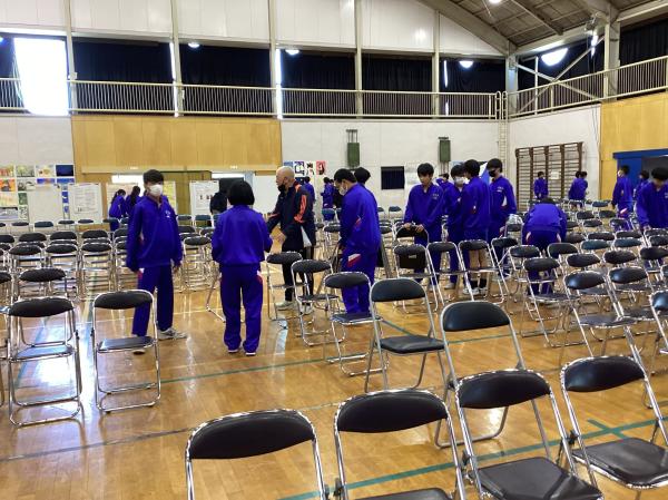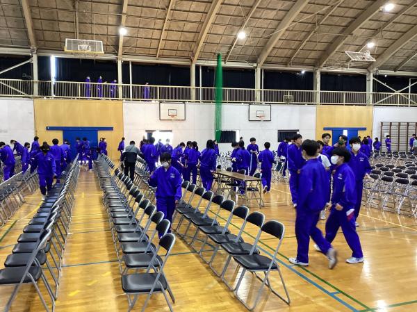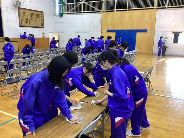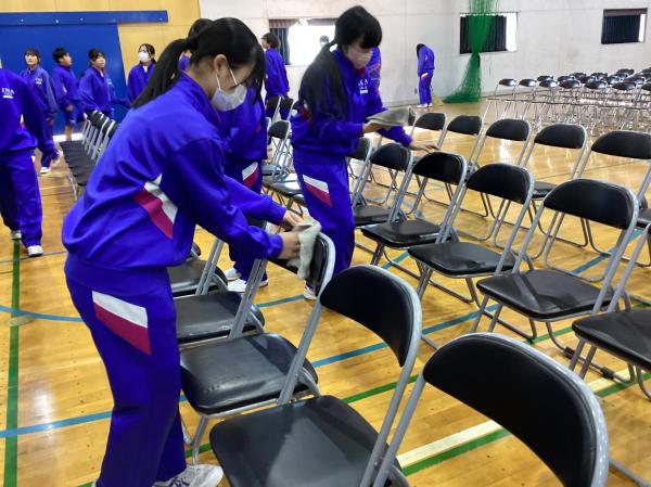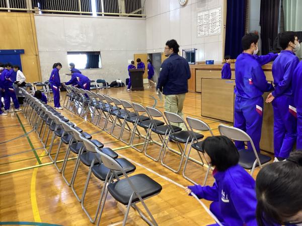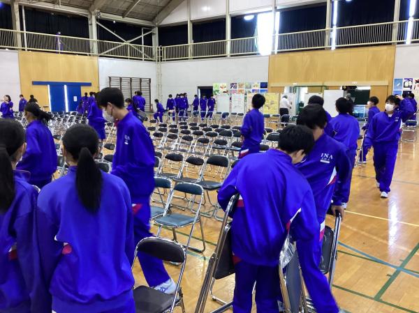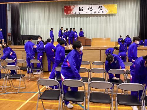 明日の稲穂祭に向け、2年生が会場づくりを行いました。