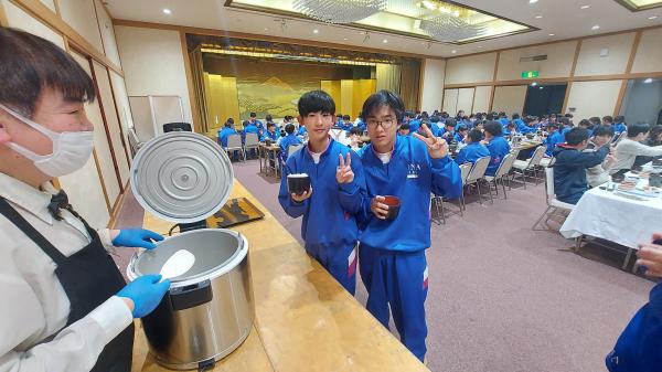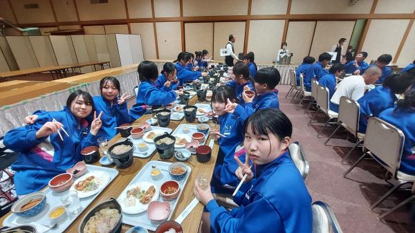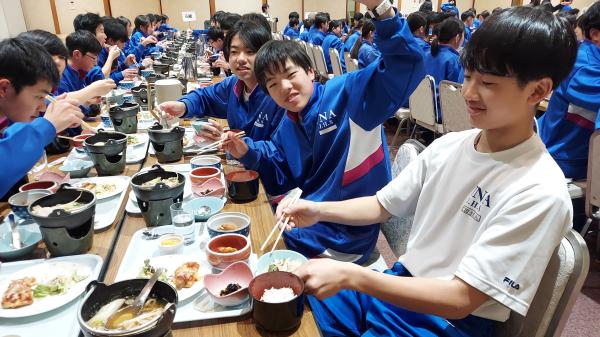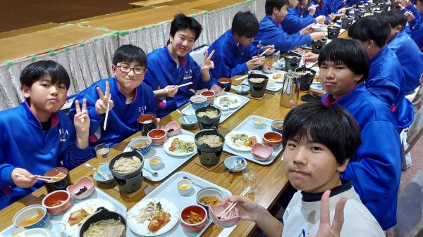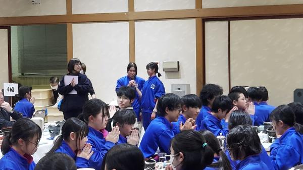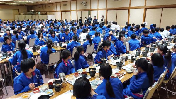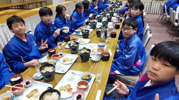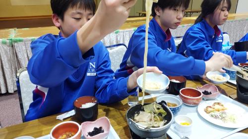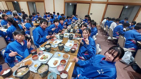 2日目の夕食です。今日は、一日中スキー実習だったので、さらに疲れたと思います。 今晩もいっぱい美味しいごはんを食べられているようでした!