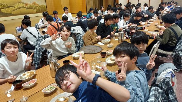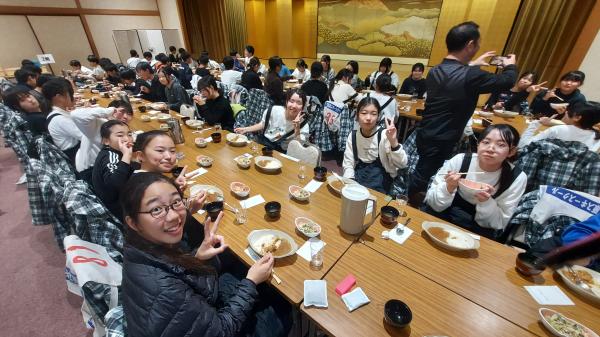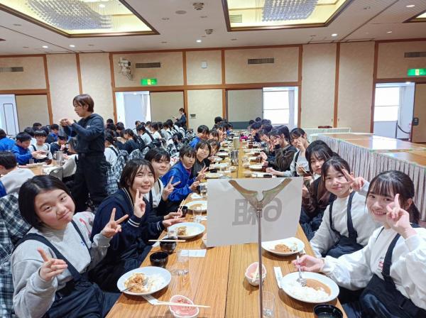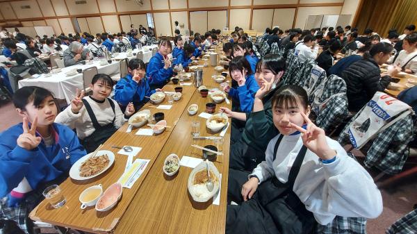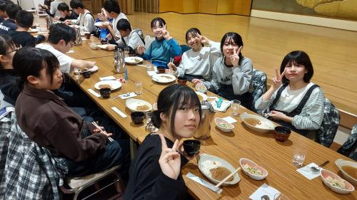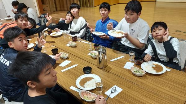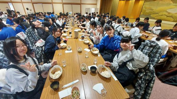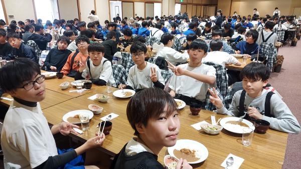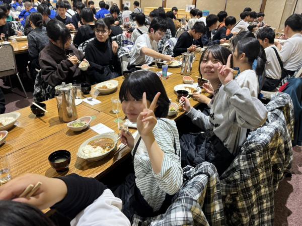2日目の昼食です。午後のスキー実習、自由滑走に向け、しっかりとエネルギー補充です!