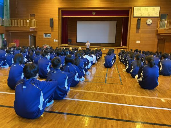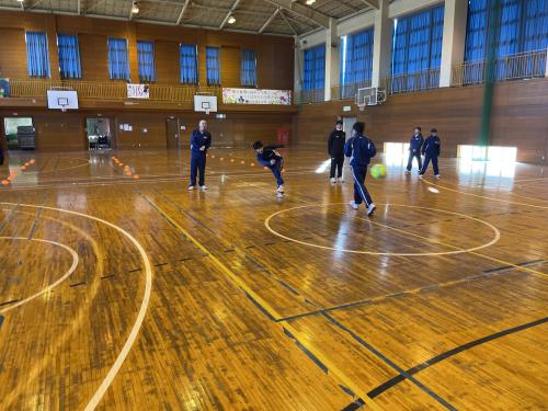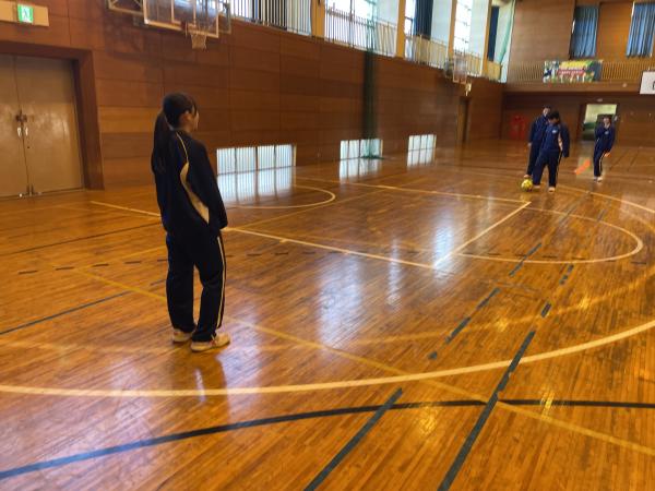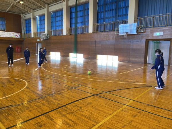 1時間目から体育の授業で元気にサッカーをしました。 パスやドリブルなど、初めてサッカーをやる生徒も多かったのですが、一生懸命に取り組んでいました。 寒い中でしたが、たくさん走ってたくさん声を出して楽しむことができました。