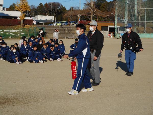 3年生は昨日今日と学年末テスト、1、2年生は2学期の中間テストがありました。5校時に最終の科目が終了すると、生徒達はみんなほっとした顔をしていました。テストが終わった後には避難訓練がありました。今回は火事を想定した訓練です。順調に避難した後、消防署の方のお話があり、代表生徒による消火器による消火訓練の体験がありました。災害には様々ものがあります。また、いつ起きるのかもわかりません。その時に備えて普段からの訓練をしっかり行っていくことの大切さを訓練をするたびに感じます。