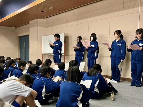 1年生のスキー宿泊学習まであと10日となりました。 今日は実行委員を中心に学年集会が行われました。スローガンの発表、持ち物やきまりについての話があり、どの生徒も真剣に聞く姿が見られました。 宿泊学習は普段の学校生活ではできない体験を通して、多くのことを学ぶ貴重な機会です。当日が充実したものになるようしっかり準備していきたいと思います。