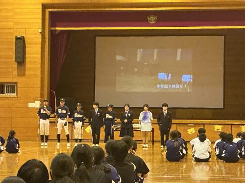 生徒会による学校生活についての劇や、各部活動の紹介をしました。