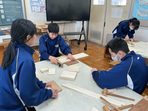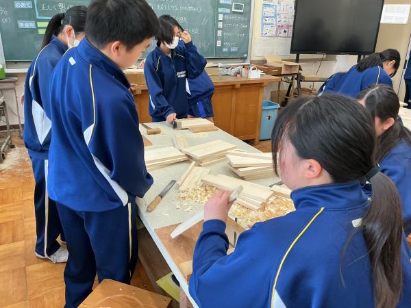 1年生は技術の授業で本棚を製作しています。 今日はかんながけの作業を行いました。 それぞれの部品が正確な寸法になるように削っていく中で、力加減が難しいという声も聞こえましたが、かんなを調整しながら丁寧に作業を進めました。 完成が楽しみです!