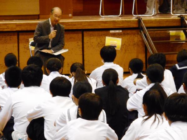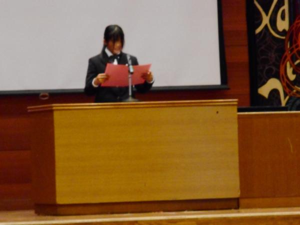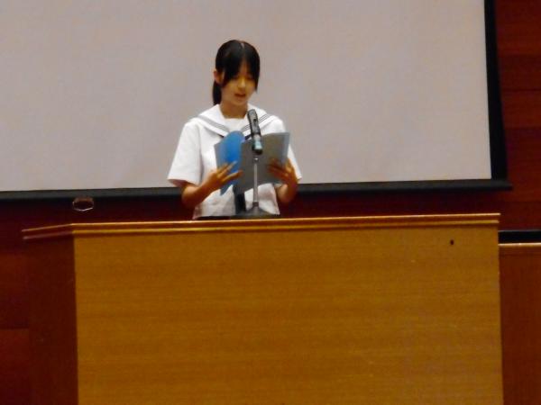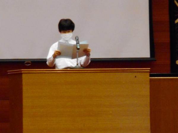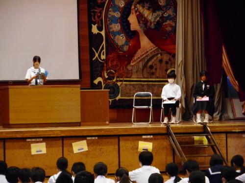 3連休が明け、今日から2学期が始まりました。1時間目には表彰と節目の式が行われました。1年生から3年生までの代表生徒が1学期の反省と2学期に向けての抱負を述べました。どの学年にも共通していたのが学習面をがんばるということでした。それ以外にも各々がんばりたいことをしっかりと発表していました。聞いていた生徒も同じ気持ちだったのではないでしょうか。最後に、校長先生の話を聞きました。今日の気持ちを忘れずに2学期の活動に取り組んでほしいと思います。