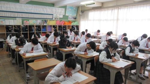今日はここ数日に比べ冷え込みもそれほど強くなく、過ごしやすい1日でした。 1・2年生は学年末テスト。実技教科から試験が始まり、休み時間にも勉強している様子が見られました。 3年生は入試対策の授業に丁寧に取り組んでいました。 理科では自由進度学習が行われています。 自由進度学習は、令和の日本型学校教育のキーワードである個別最適な学びを実現する方法の一つです。 自分で自分の学び方や学ぶ内容を計画し、個人のペースで学びを深めていきます。 授業では、必修課題の口頭試問に取り組む前に、友達同士で協働的な学びをする様子がありました。
