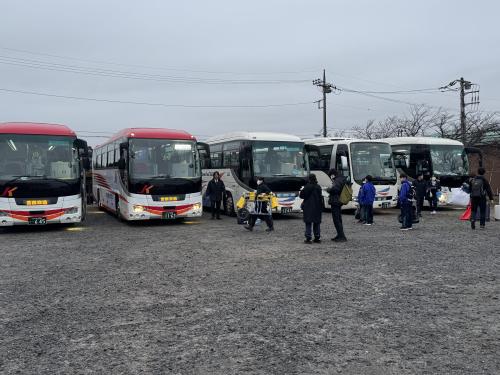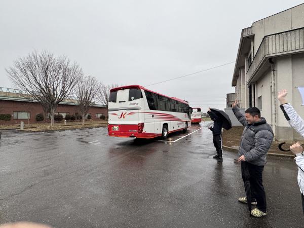 1年生がスキー宿泊体験学習に出発しました。予定通りの時刻の出発となりました。 保護者の方々、送迎へのご理解とご協力ありがとうございました。 充実した学習になることを願っています。