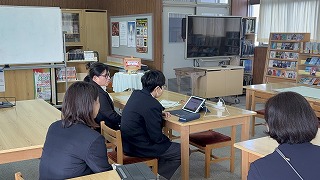 図書室で、オンラインを活用した日本語の授業が行われた。