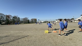 冬空の下、白熱のソフトボール対決 3年生が元気にプレー