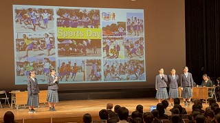 緊張を感じさせない堂々とした姿で、体育祭や文化祭「創夢祭」の様子を、たくさんの写真とともに紹介した。