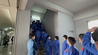 竜巻発生時の避難訓練2「校内の避難場所へ移動」