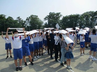 「常総水害から10年 きおくをつなぐ 未来へ向けて」を人文字で撮影するプロジェクトに本校も参加。