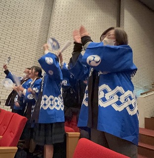 つくばみらい市教育委員会は、出場生徒のために法被(はっぴ)や応援用のうちわを準備し、町田教育長も会場で声援を送ってくださった。