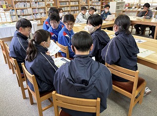 図書室で、第4回体操服選定委員会が開催され、新しい体操服に使用されるロゴデザインが「筆記体」に決定した。