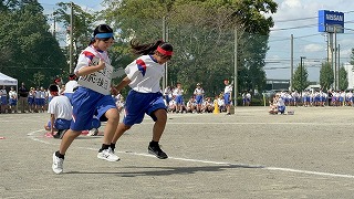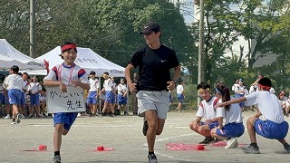 コース上に置かれたカードに書かれた人を探し、腕を組んでゴールします。
