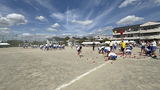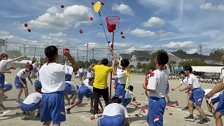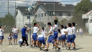生徒の競技終了後、保護者対抗の玉入れも行います。