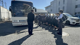 バスの運転手にあいさつをした部員らは、バスに乗り込んだ。