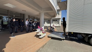 コンサートに使用する楽器をトラックに積み終え、運転手さんにあいさつをしていた。