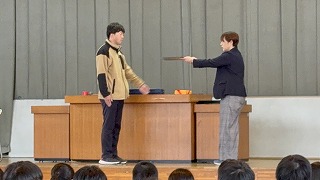 続いて、卒業証書授与の動きを教員がモデルとなって示した。