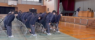 3月2日(月)9時35分、静まり返った体育館に3年生が整列した。