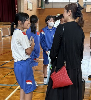 体育館では、宝塚劇団で活躍されていた方が、2年生の合唱の指導。