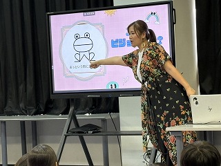2年生が、絵描き歌に合わせて、イラストを描いていた。