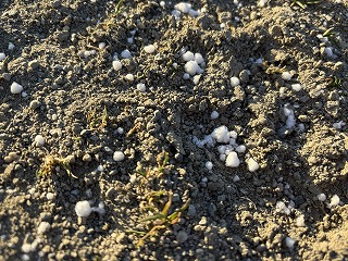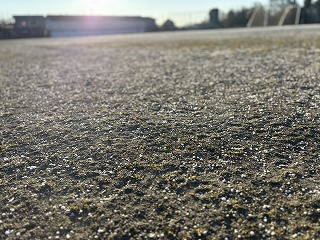 1月21日(水)朝、運動場一面に白い粒が静かに降り積もった。