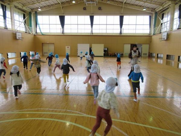 体操の後には、『あぶくたった』という鬼ごっこと、手を使わずに新聞紙を運ぶ『新聞紙リレー』をしました✨✨