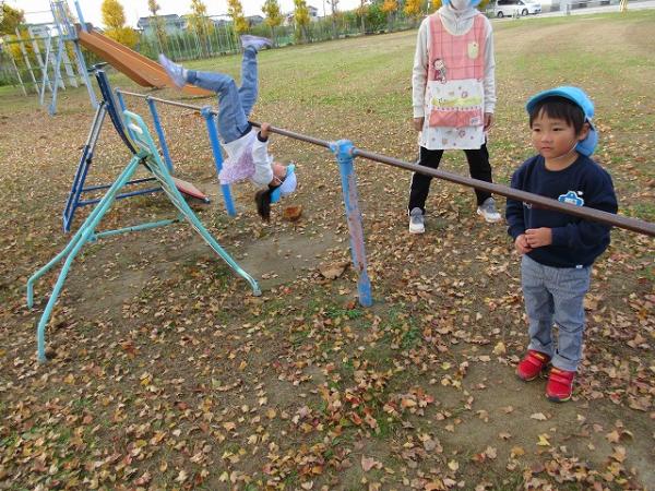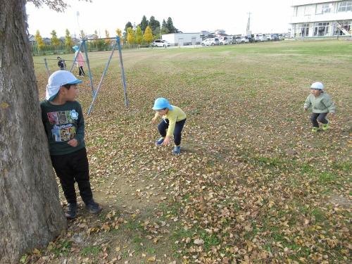 最近朝晩はとても冷え込み、ジャンパーを着て登園して来る子どもたち✨でも、外で鬼ごっこや中当て等で体を思いきり動かしていると「暑ーい💦」「喉乾いた‼️」と、上着を脱いで夢中になって遊んでいます😆 最近は、だるまさんが転んだ、中当てが人気で友達を誘って子ども同士で遊びを進めようとする姿が見られます🤗💕 これから段々寒い日が続いていくと思いますが、体いっぱい動かして元気に過ごしていこうと思います🏃💨