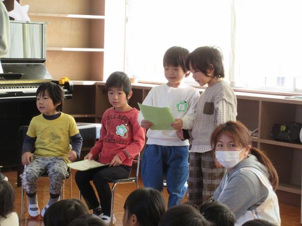質問は『好きなおもちゃ🤖』ぬいぐるみやブロック等、一人一人が大きな声で発表することができました😆🎵