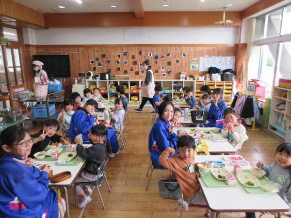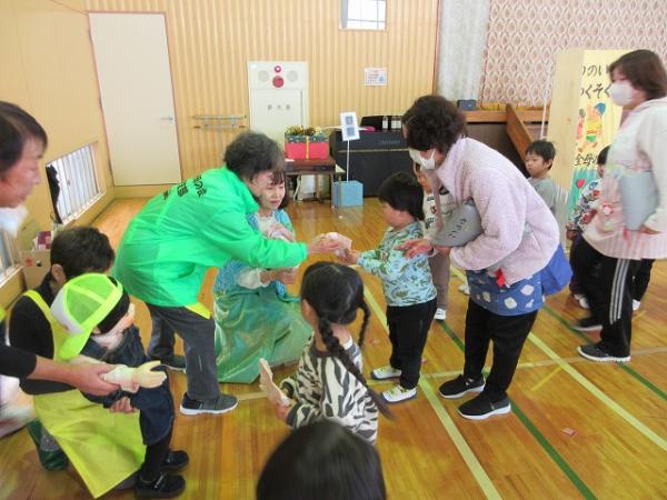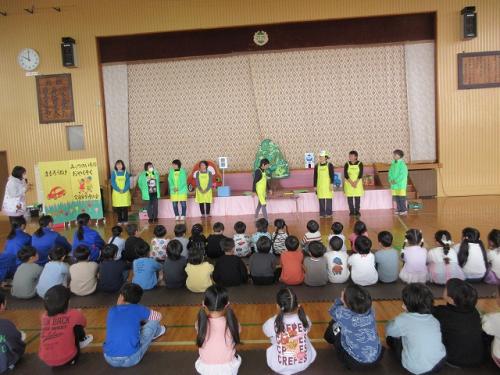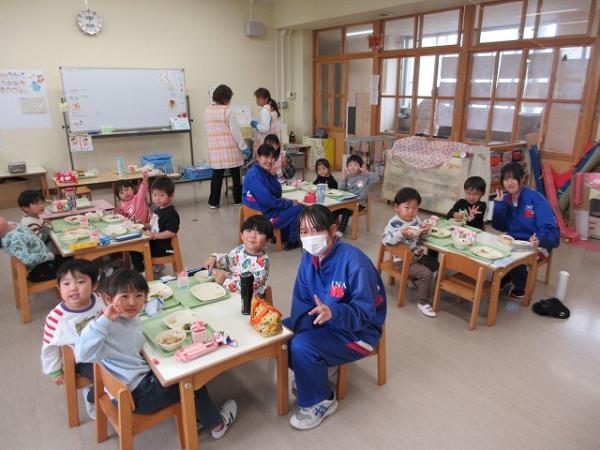 今日は、中学生の職場体験があり、伊奈中学校から9名のお姉さんたちが遊びに来てくれました🎵 朝登園して来るとお姉さんたちが居て、嬉しそうな表情の子どもたち😆 外で中当てやリレーをしたり、一緒に給食を食べたりして楽しく過ごしました🤗✨ また、交通安全母の会の方による交通安全教室もありました💕 劇や紙芝居を通して交通ルールについて教えてもらえて良かったです🚗 帰りにチューリップの球根を貰ったので、お家で育ててみてください🌷