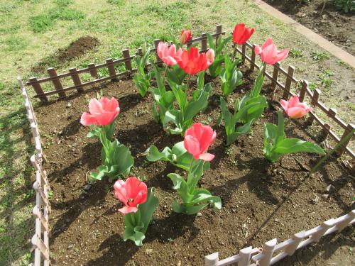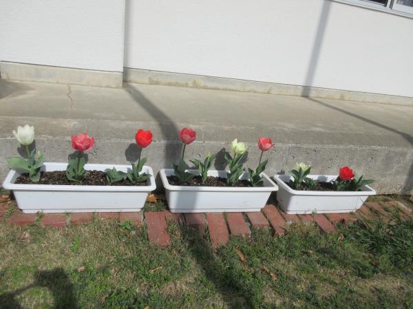 子どもたちが植えた幼稚園のチューリップがたくさん咲いています😉