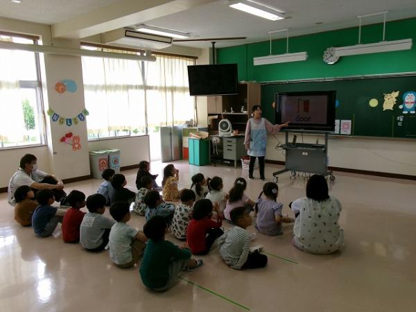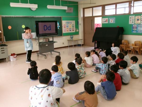 年長さんのぞう組さんの英語活動の様子です。幼稚園での英語活動は、英語を好きになって、自分で使おうとする意欲を高めることが大切です。ベル先生は、アルファベットや単語の発音を丁寧に教えてくれます。みんな英語が大好きです☺