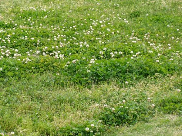 園庭の隅で群生しているシロツメクサ。白いお花がきれいです。花言葉は、約束、幸運、私を思って、などです。四葉のクローバーが幸運を意味しているだけあって、愛情や幸運を表すものが多いようです。これから草がどんどん生えるので、草刈りを頻繁に行わなくてはいけないところですが、ちょっとだけ残しておこうかなと思います。🌺
