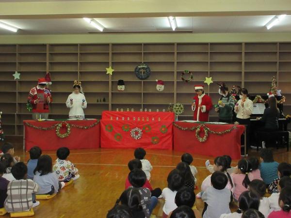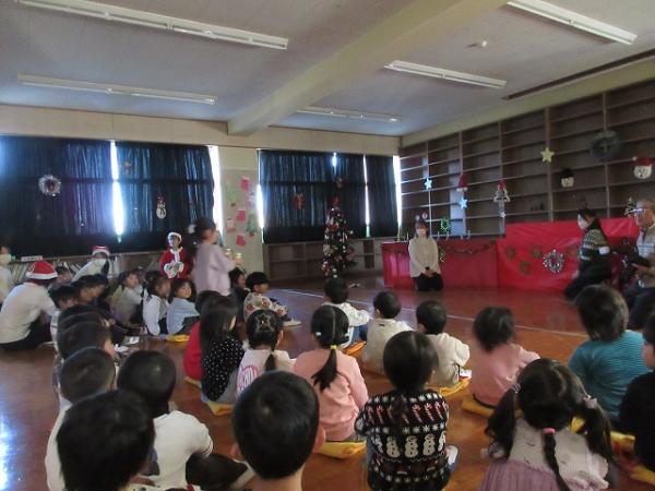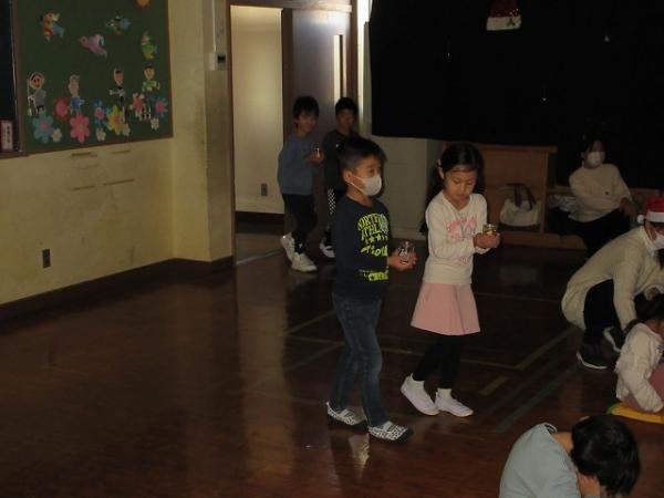 先生達からの出し物は、ミュージックベル🔔🎶『サンタが街にやってくる』と『あわてんぼうのサンタクロース』を演奏してくれました🎵