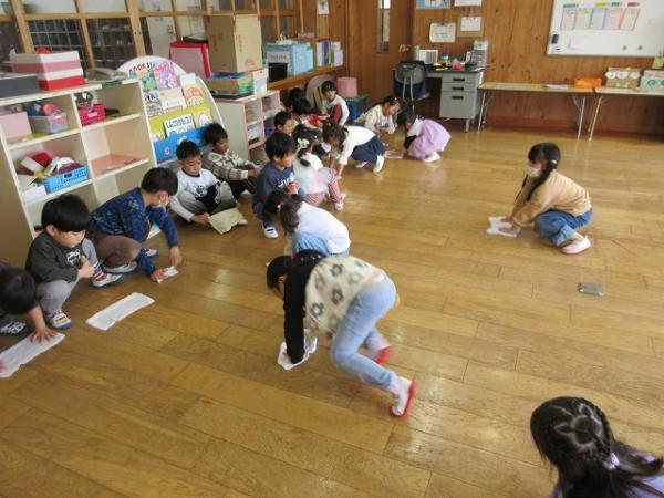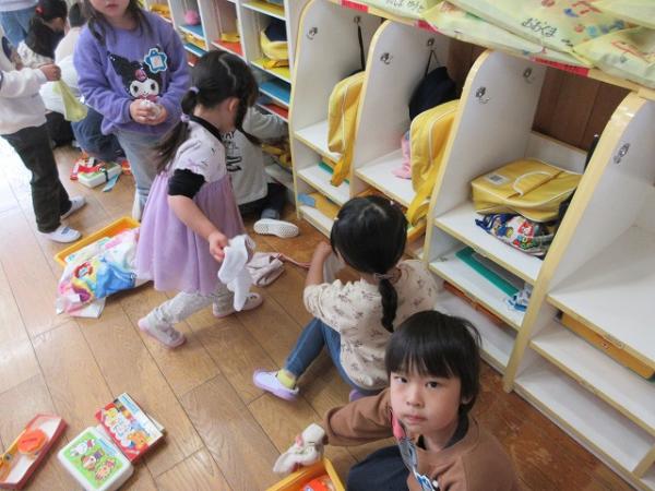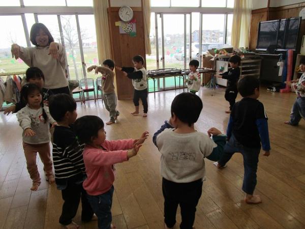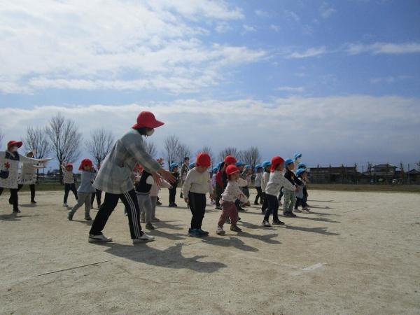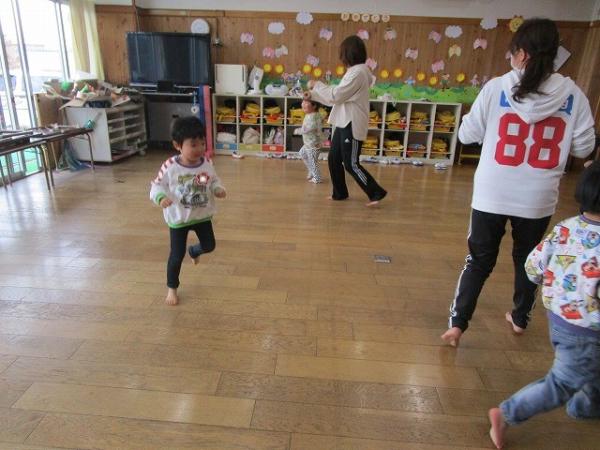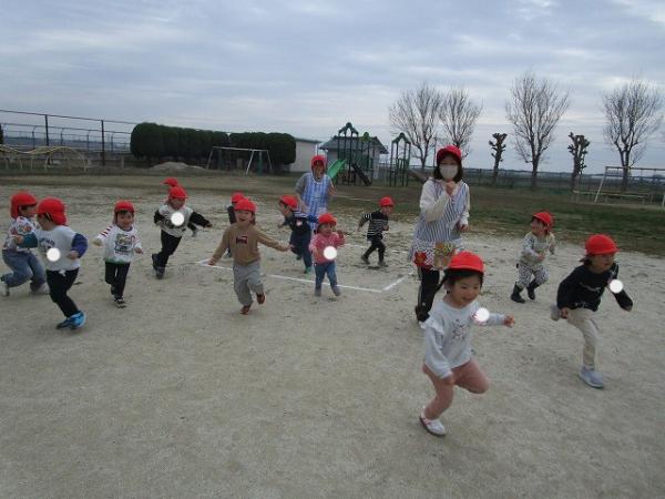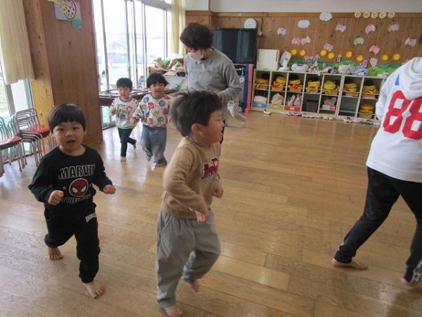 いちご組さんが進級クラスで過ごしてから、3日が経ちました!保育室にも少しずつ慣れてきて、身支度もスムーズになってきました✨✨(*^▽^*)今日は、園庭で、‟形鬼”をしました🎵ルールは、白線で描いてある〇△□♡の形に走って移動しながら鬼から逃げる遊びです♫とっても盛り上がって「また遊びたいね」とニコニコしながら話していました!他にも、リズム遊びをして体をたくさん動かして楽しみました~(^O^)/💗