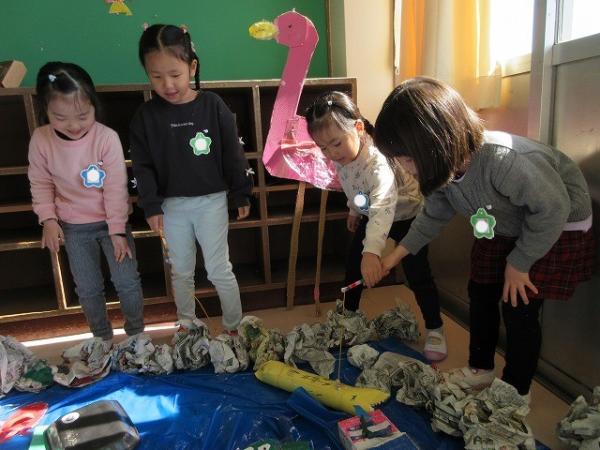今日は、最後の英語教室や保健指導がありました。「最後」と聞いて寂しさがあったり、卒園を実感したりしているようです🌸年中さんが作っている動物園で、一緒に遊ぶこともできました🐘お部屋の大掃除もしました🧹「年中さんに渡すもんね」などの言葉も聞かれ、友達を思いながら掃除を頑張っていましたよ✨暖かい陽気だったので、テラスで給食を食べることもできました。あと2日です…楽しく過ごしましょうね😌