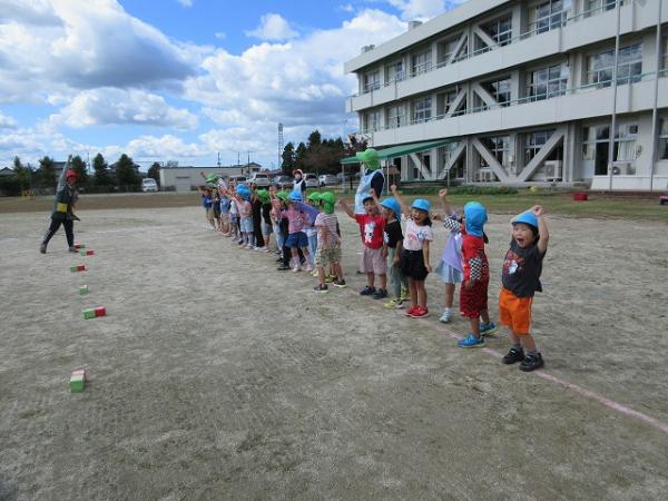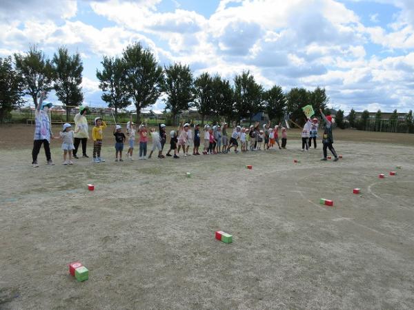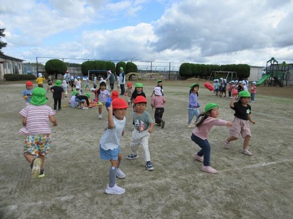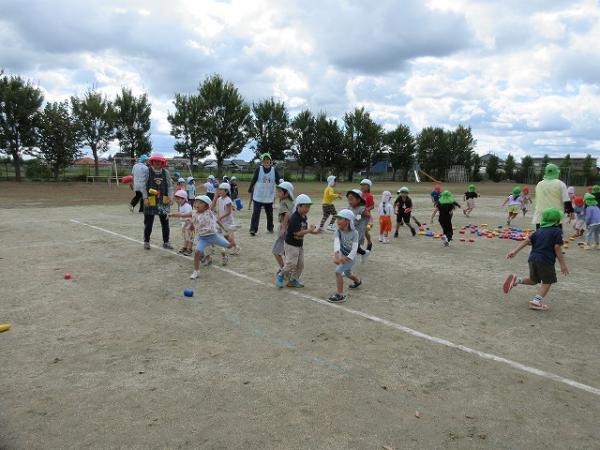 体操の後には、『あぶくたった』という鬼ごっこと、手を使わずに新聞紙を運ぶ『新聞紙リレー』をしました✨✨