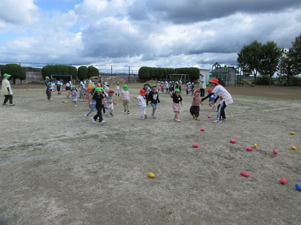 今回のみんなで体操は、運動会の遊戯として、ぞう組の『あいうえおんがく🎵』と、すみれ組の『ココロオドルほうで🎵』を踊りました🕺