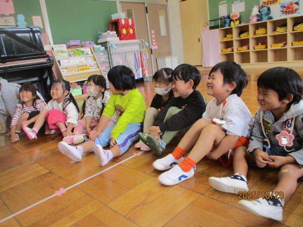 年中・年長組のこども達は、去年の観劇会を覚えていたようで・・・「あの面白い劇見せてくれるの?」「もも組さんの時、ずっと笑ってたんだよな~😄」とワクワクの気持ちがあふれていましたよ💕
