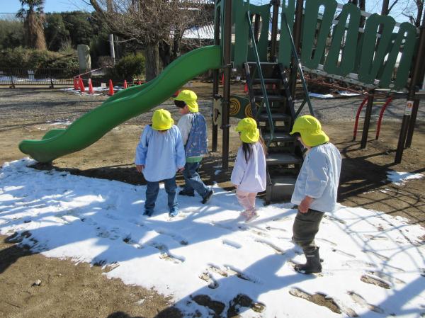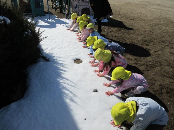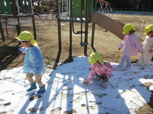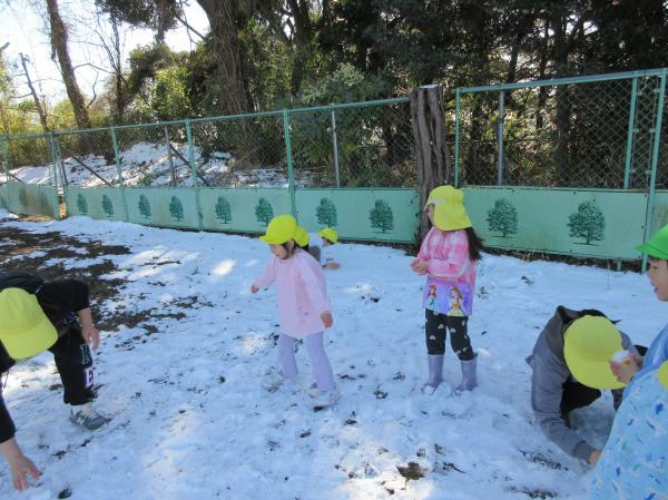 マラソンをした後には、園庭に残っていた雪で今日も雪遊び⛄✨