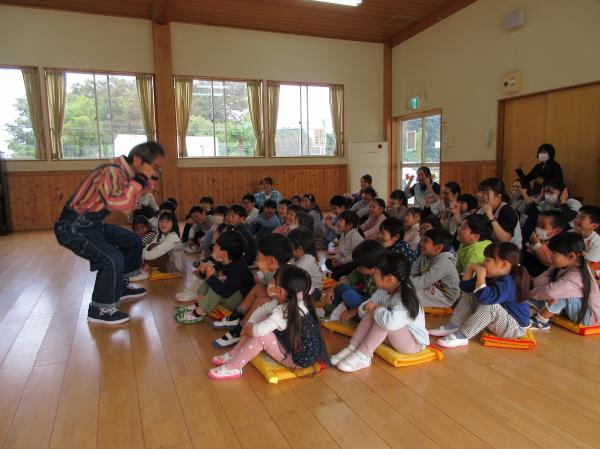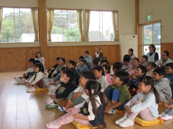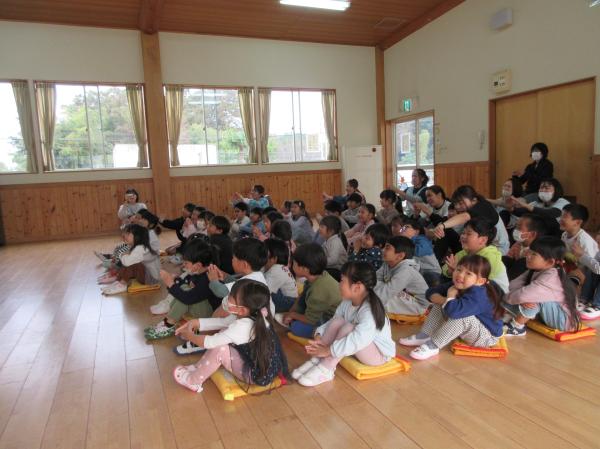 年中・年長組のこども達は、去年の観劇会を覚えていたようで・・・「あの面白い劇見せてくれるの?」「もも組さんの時、ずっと笑ってたんだよな~😄」とワクワクの気持ちがあふれていましたよ💕