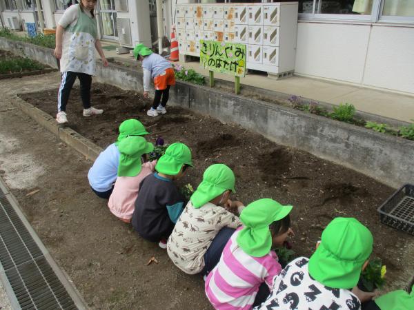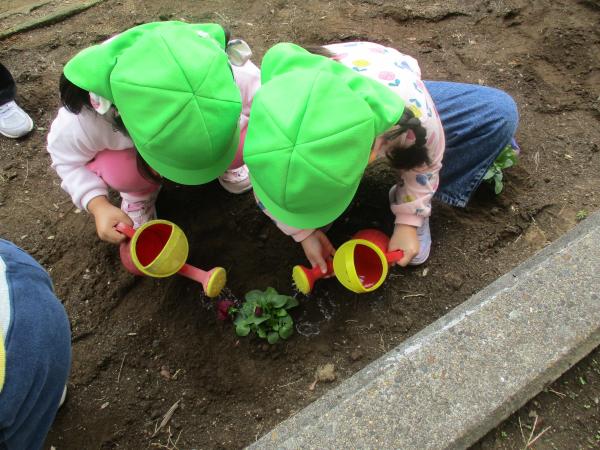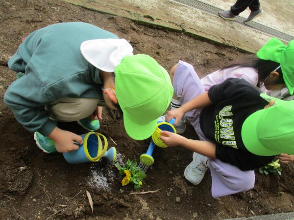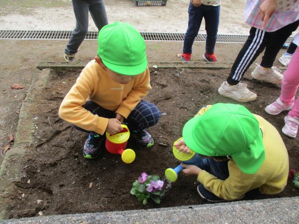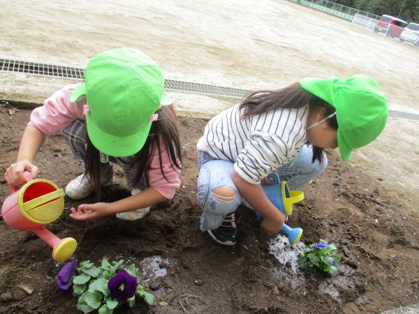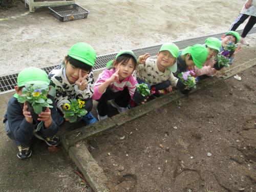 今日の年長さんの様子です🦒 今日は、花壇にお花植えをしました🌼✨ 「大きくなーれー」「きれいにさいてね!」と植えたお花に声をかけていたこども達でした😊💓 また、今日も劇と合奏の練習を頑張りました😆! 少しずつ、台詞やリズムを覚えてきました!! 劇で使う背景や大道具もみんなで力を合わせて作っていきたいと思います😊✌ 明日は、防災訓練です🚒🚑楽しみに来てね😍💕