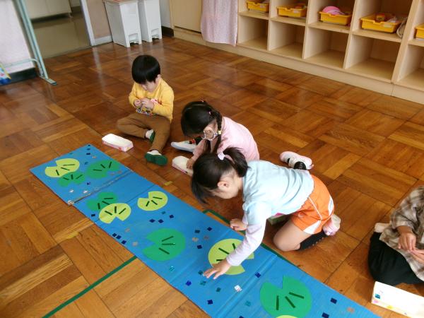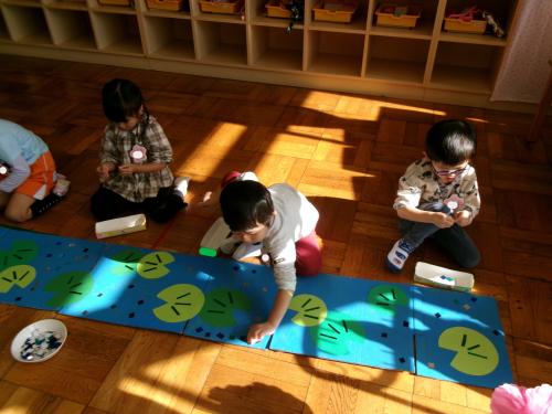 生活発表会に向けて練習を頑張っているもも組さん🍑 こども達にとって初めての発表会ですが、楽しみながら練習に参加する姿が見られています😊 劇で使う大道具もキラキラシールを貼ったり、カエルを作ったりとこども達と一緒に作っています💕 今後も頑張るこども達の姿を認めながら練習を進めていきたいと思います✨ 明日は県民の日のため、お休みです! 金曜日に元気に幼稚園に来てくださいね😄 また、金曜日は就園時健康診断のため11時降園になりますので、バスの時刻の確認をお願い致します🚌