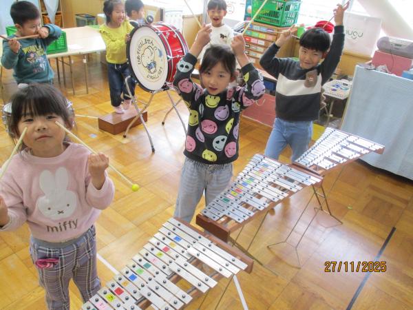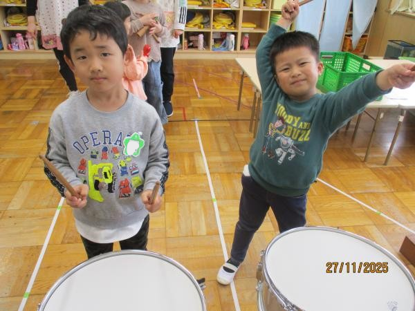 「ピアノの音をよく聞いてやる!」「間違えずに叩く!」と音をそろえるための素敵な意見がこども達から聞かれて、一生懸命頑張る姿が見られました😊✨