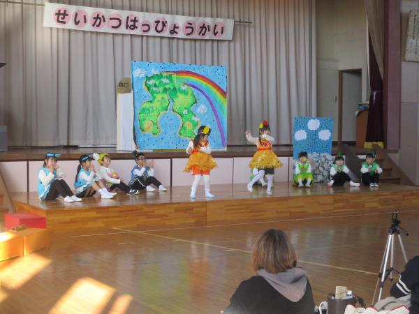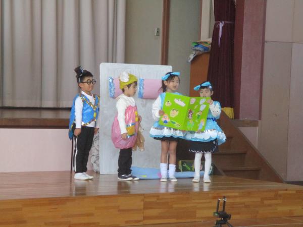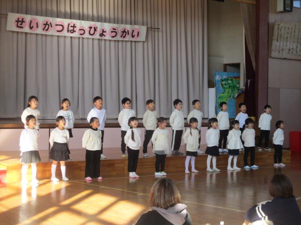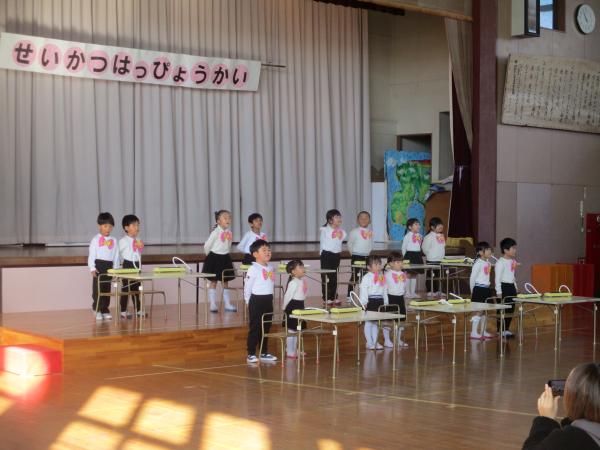 今日は生活発表会でした✨この日を迎えるまでに、たくさんの話し合いや練習を重ねてきました☺上手くいかないことや意見が食い違うこともありましたが、クラスのみんなと力を合わせたり励ましあったりすることで乗り越えることができました✨ 緊張もしたと思いますが、こども達は「楽しかった~😄🎵」と余裕の表情😊今までの頑張りが自信につながったのだな、と感じました😌✨ ご家庭でもたくさん褒めていただけたら幸いです✨今日はゆっくり休んで、明日また元気に幼稚園にきてくださいね✌
