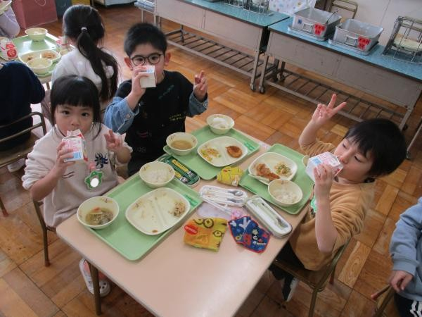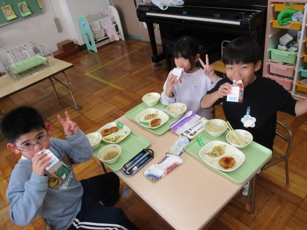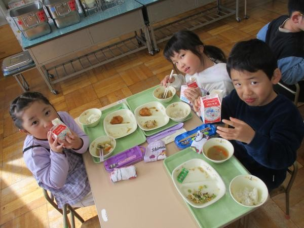 また、給食では、牛乳をストローを使わずに飲む小学生の飲み方にチャレンジ!!🥛