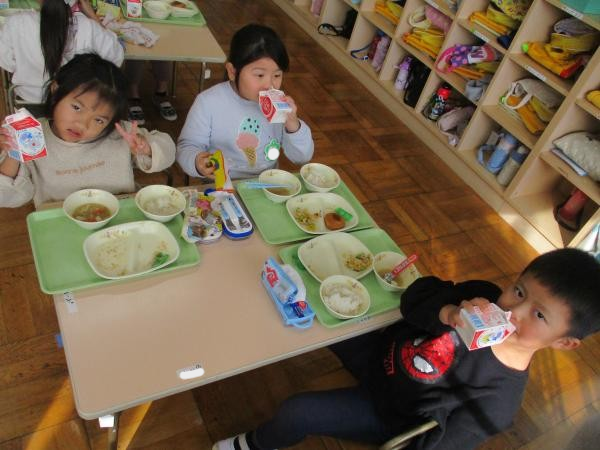 「ちょっとこぼれちゃった💦」と言いつつも、上手に飲めていたきりん組さんでした😋💯