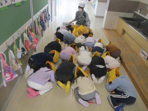 今年度初めてのJアラートの避難訓練でしたが、防災頭巾をしっかり被って窓のない廊下に避難することができました🤫✨✨